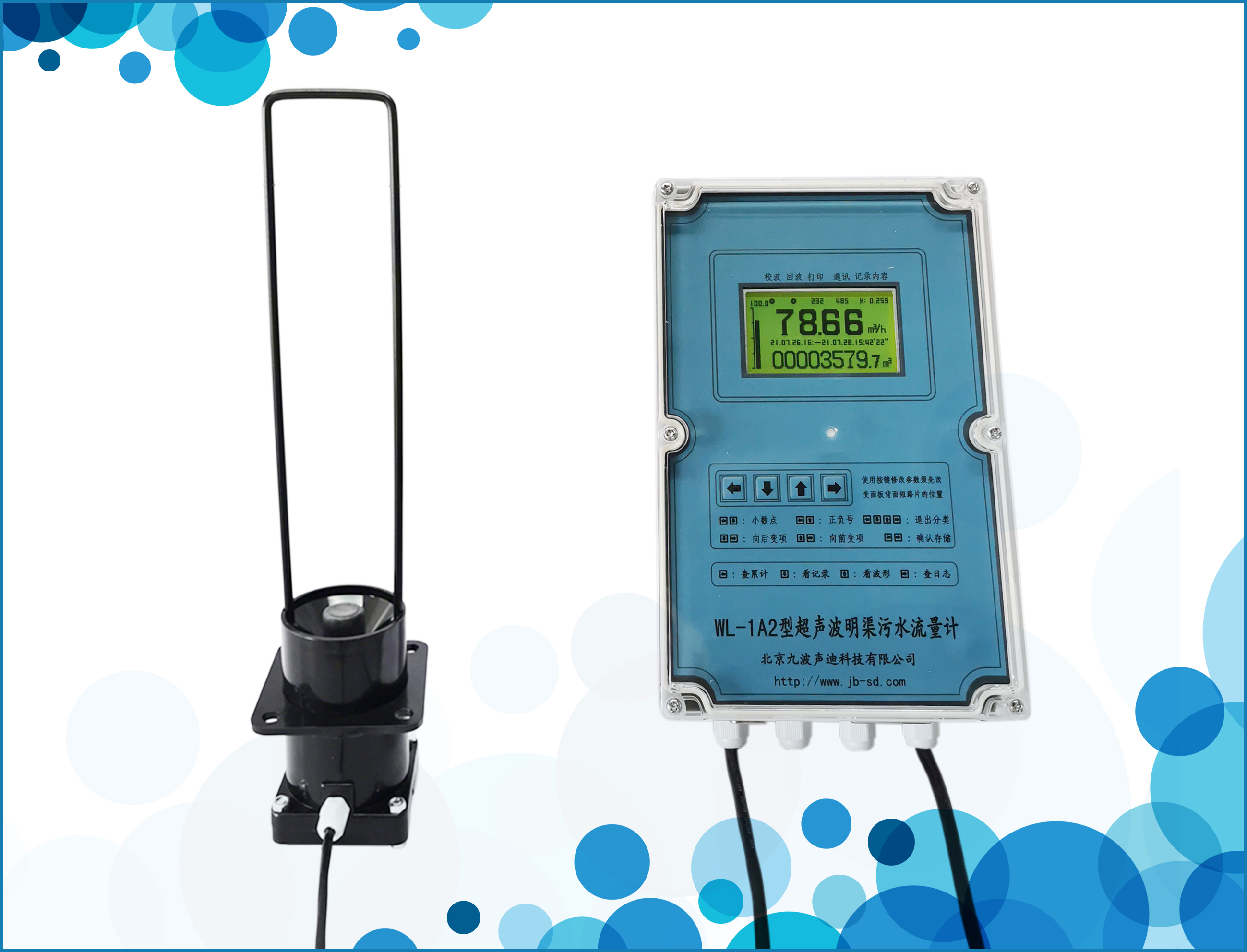 通過鍵盤設置儀表參數,可與各種量水堰槽配用。以適應地表明渠、地下涵管等不同的應用條件。